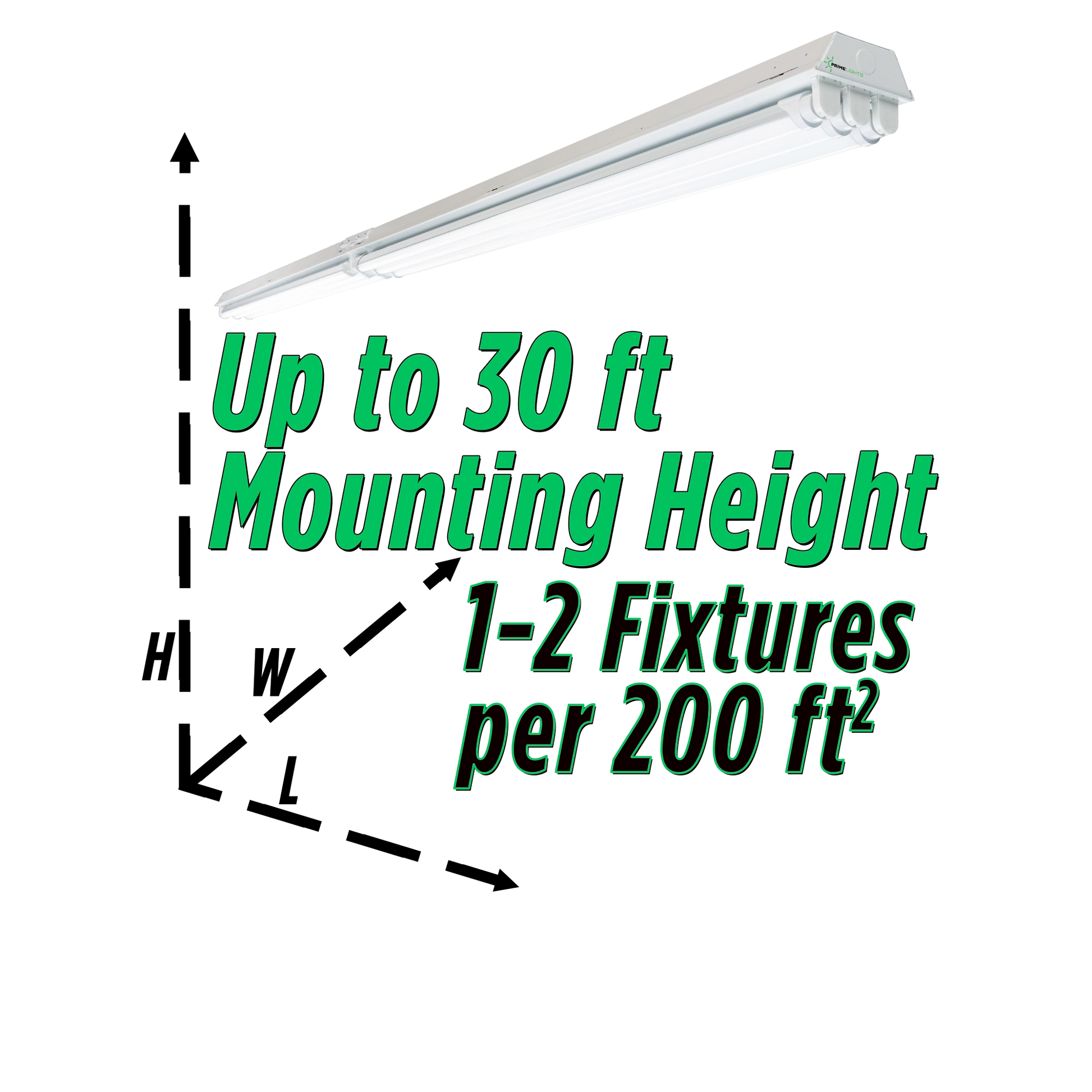 Applications: The PrimeLights® LED Bolt® 8' 6 lamp is the ideal fixture for ceiling heights ranging 8' to 20', depending on spacing and application. Transform your shop to picture perfect daylight with clean, energy efficient, cool running, bright LED four-foot fixtures. Ideal for any size shop including metal buildings, warehouses, fab shops, garages, barns, hobby shops, car restoration, showrooms, and factories just to name a few. Frosted lamps provide reduced glare when compared to clear. For higher ceilings please see our Stingray® 6 Series (up to 20' & 35').