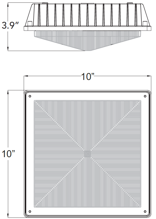 Length: 10" Width: 10" Height: 3.9" (see diagram)