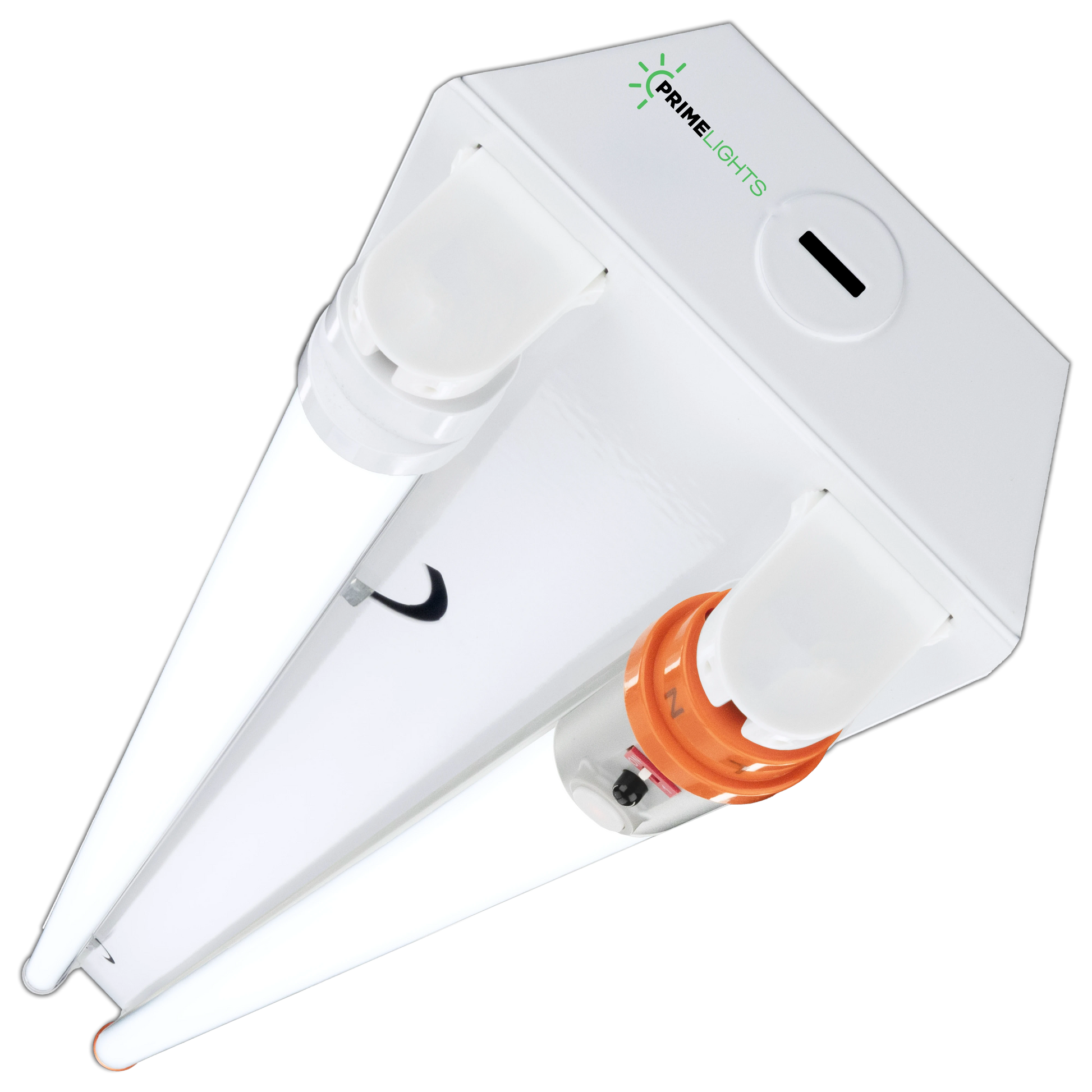 Specifications: Wired lamp holders, luminaire disconnect with 4 connection points for easy daisy chain, 20-gauge cold rolled steel in baked white enamel, 7/8'' conduit knockouts on both ends and top, mirrored aluminum reflector. Clear LED bulbs with internal drivers - no external drivers or ballasts to maintain. You will never have to change anything inside the fixture. PrimeLights® warranties every fixture and every bulb for 5 years. 110v,120v, 240v, 277v. Long lasting, durable, and bright.