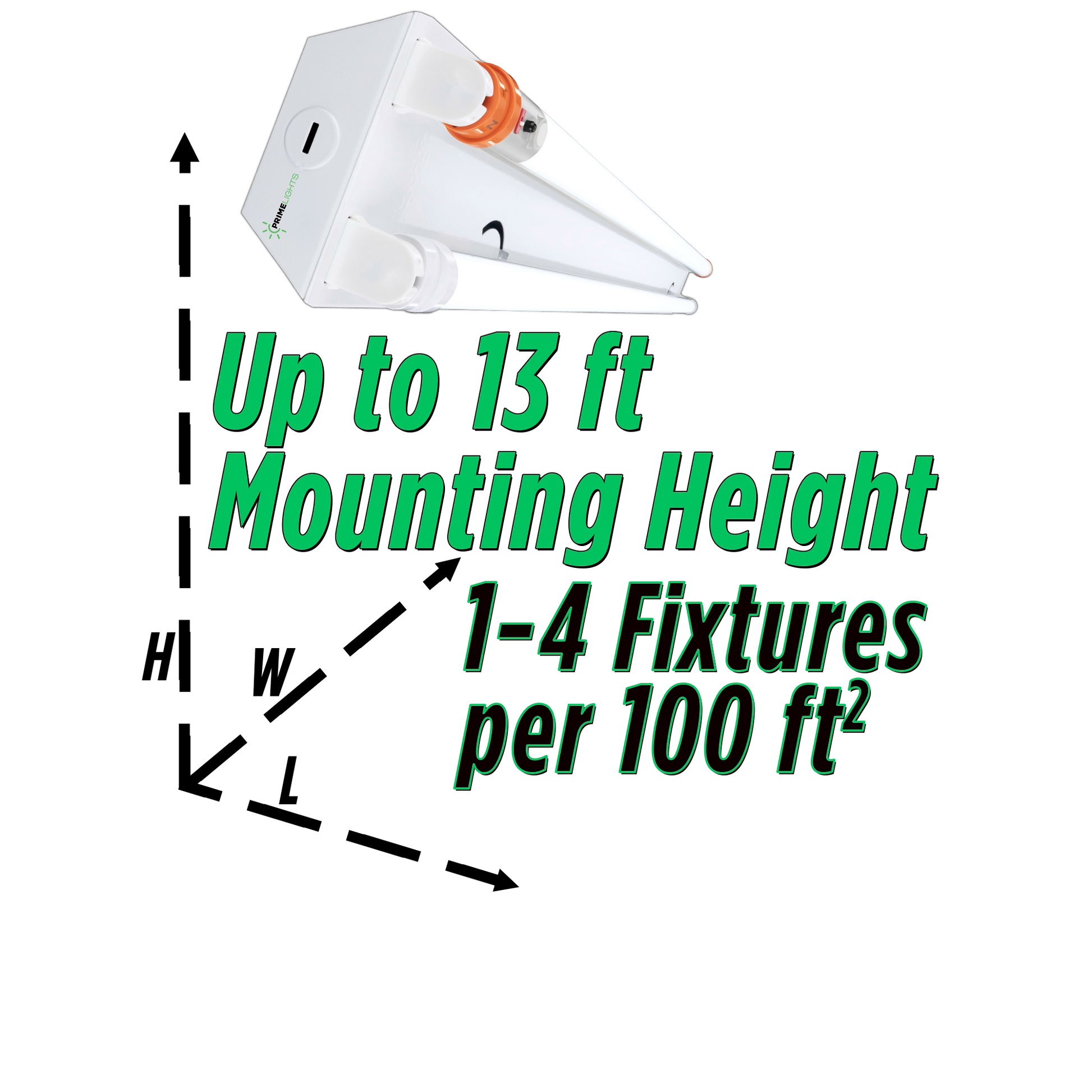 Applications: The PrimeLights® LED Bolt® 2 is the ideal fixture for ceiling heights ranging up to about 9', depending on spacing and application. Transform your shop to picture perfect daylight with clean, energy efficient, cool running, bright LED four-foot fixtures. Ideal for any size shop including metal buildings, warehouses, fab shops, garages, barns, hobby shops, car restoration, showrooms, and factories just to name a few. Frosted lamps provide reduced glare when compared to clear. For higher ceilings please see our PrimeLights® LED Bolt® 3 (up to 12') or Stingray® 4 & 6 Series (up to 20' & 35').