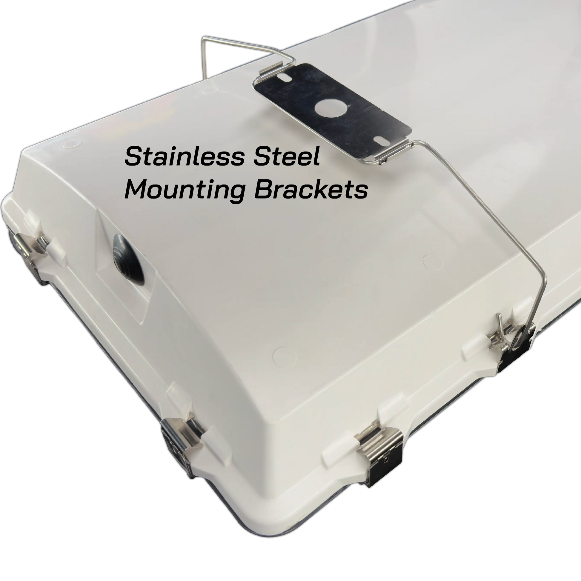 LED Tubes have their own internal drivers - no external drivers or ballasts to worry about. You will never have to change anything inside the fixture. This is the last fixture you will ever have to buy or maintenance. Enclosed and gasketed to keep weather, dust, bugs, and vapors out. Lens has a clear linear pattern to diffuse light evenly.