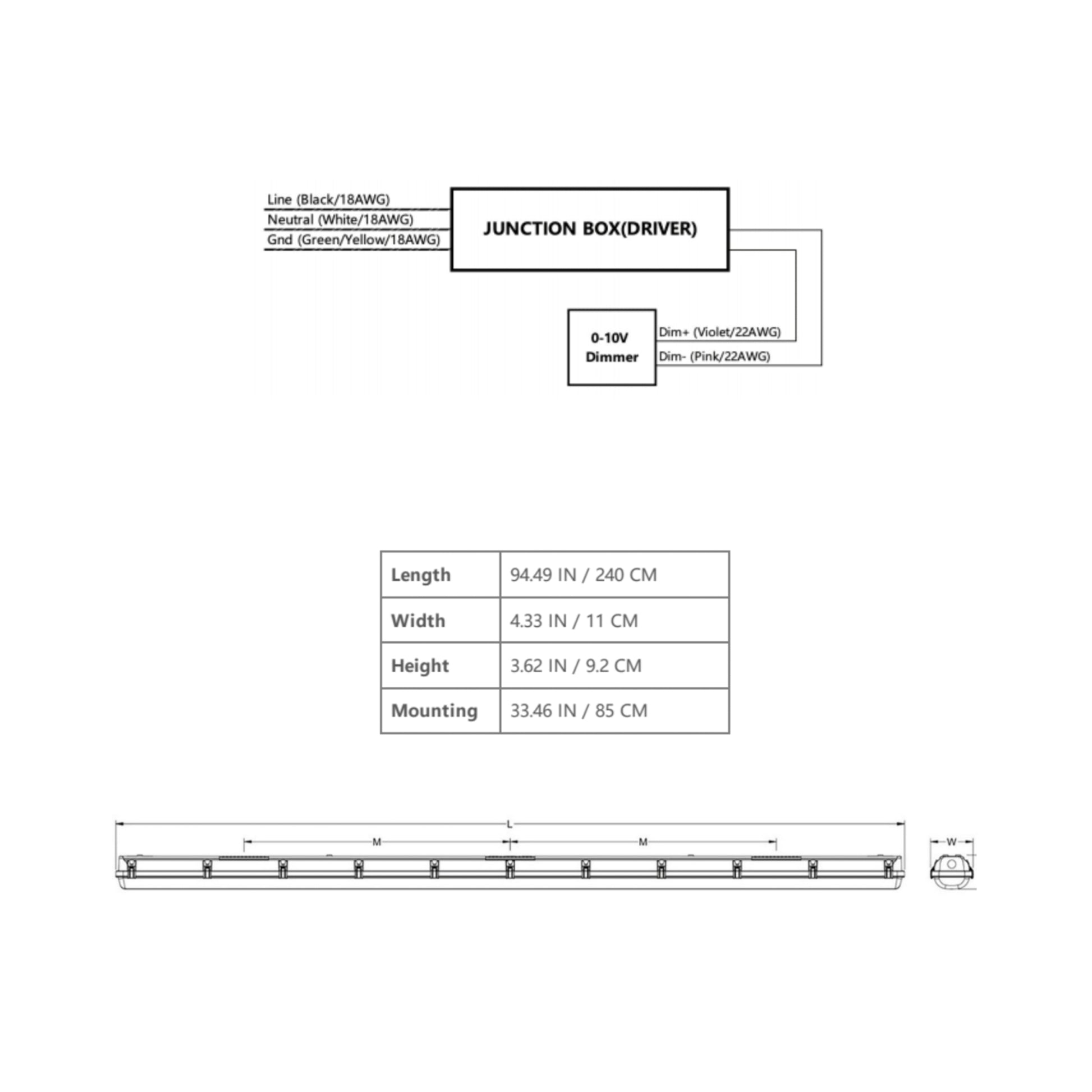 8' ft. LED Vapor Tight Up to 80 Watts/14,400 Lumens, Dimmable (12+ Count Minimum)