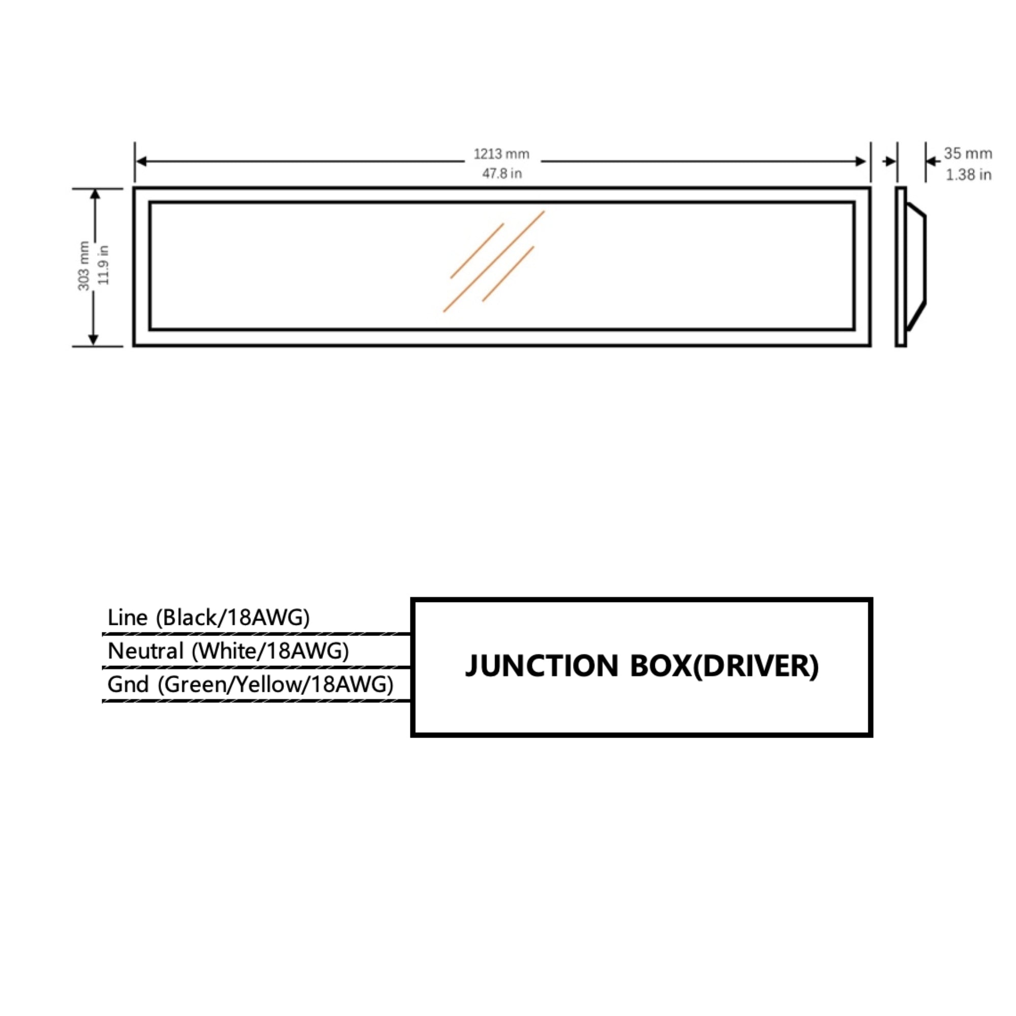 Length: 47.8”  Width: 11.9"  Depth: 1.38”