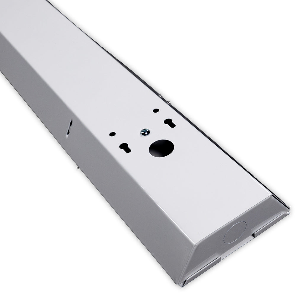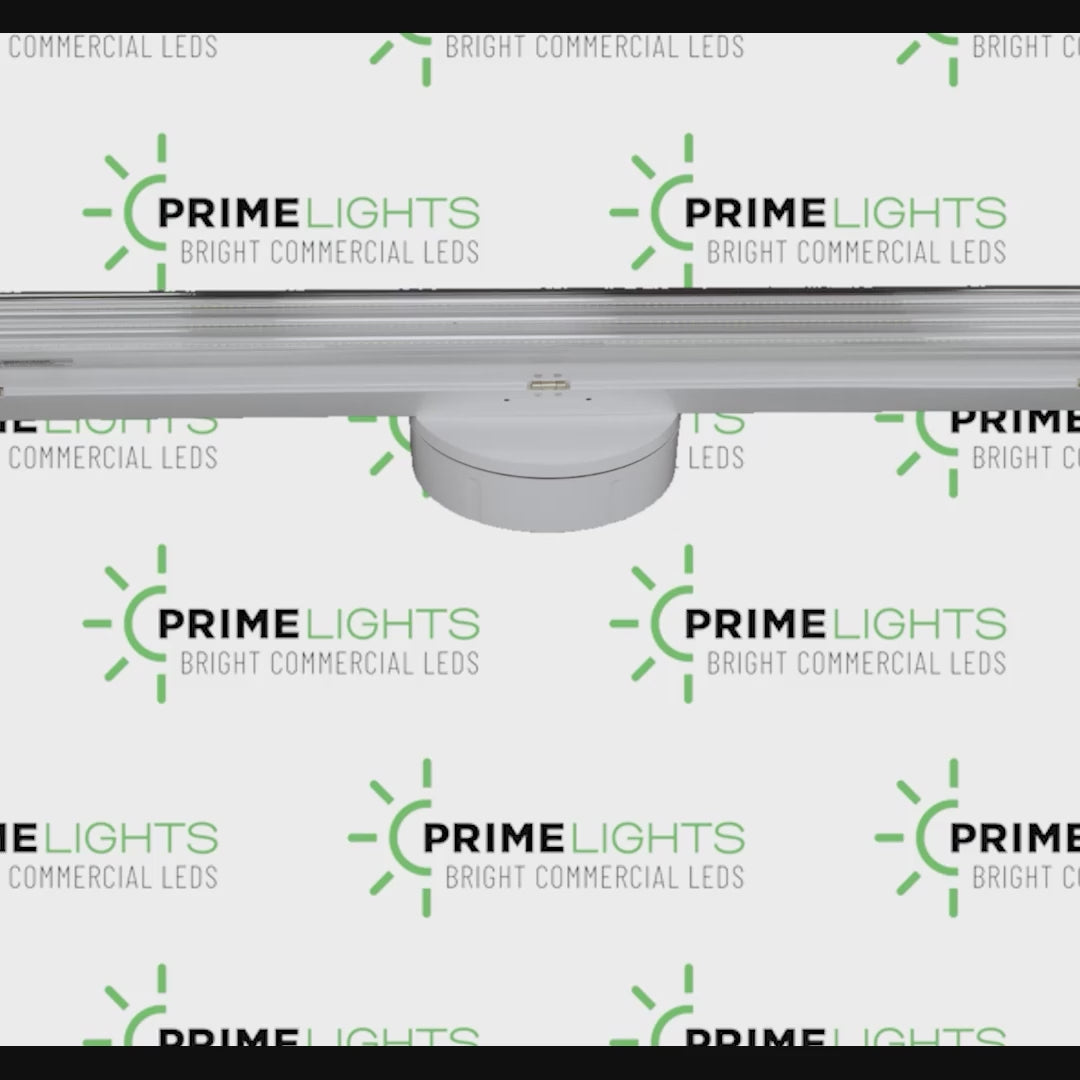 Specifications: Wired lamp holders, luminaire disconnect with 4 connection points for easy daisy chain, 20-gauge cold rolled steel in baked white enamel, 7/8'' conduit knockouts on both ends and top, mirrored aluminum reflector. Clear LED bulbs with internal drivers - no external drivers or ballasts to maintain. You will never have to change anything inside the fixture. PrimeLights® warranties every fixture and every bulb for 5 years. 110v,120v, 240v, 277v. Long lasting, durable, and bright.