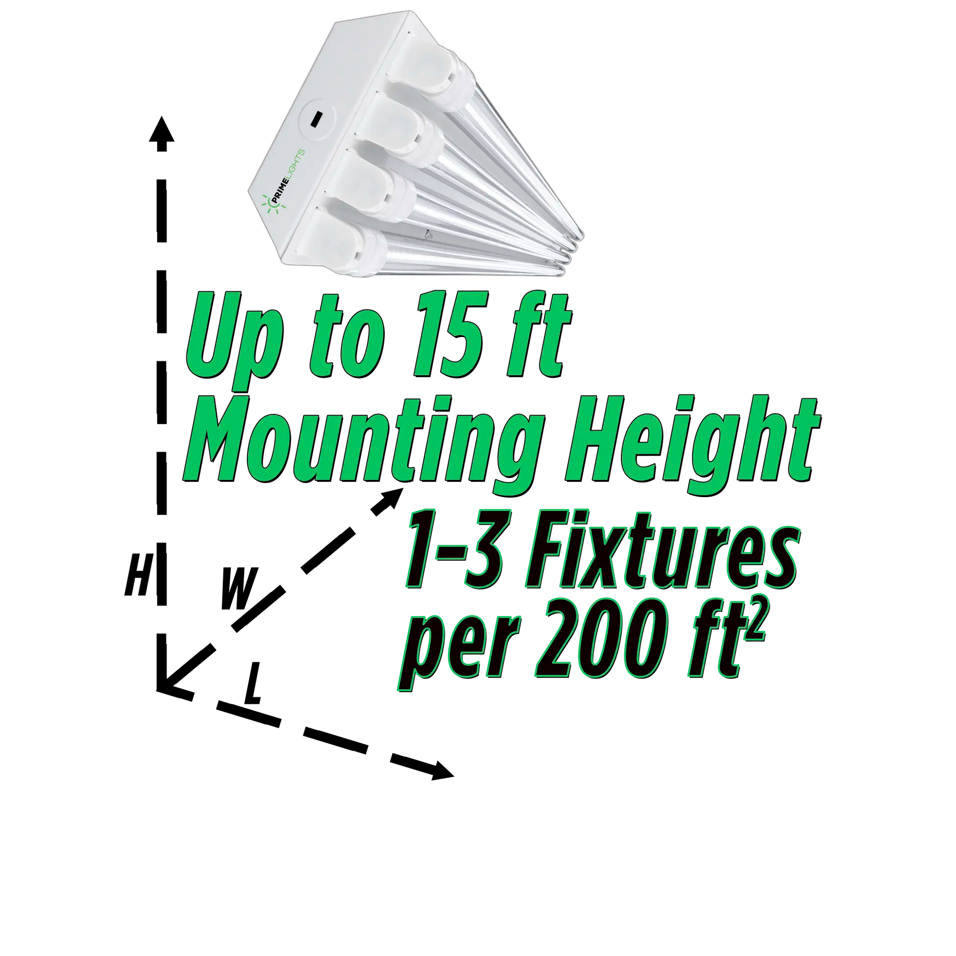 Applications: The PrimeLights® LED Stingray® 4 is the ideal fixture for ceiling heights ranging up to about 20’, depending on spacing and application. Transform your shop to picture perfect daylight with clean, energy efficient, cool running, bright LED four-foot fixtures. Ideal for any size shop including metal buildings, warehouses, fab shops, garages, barns, hobby shops, car restoration, showrooms, and factories just to name a few. Frosted lamps provide reduced glare when compared to clear. For higher ceilings please see our PrimeLights® LED Stingray® 6 Series.