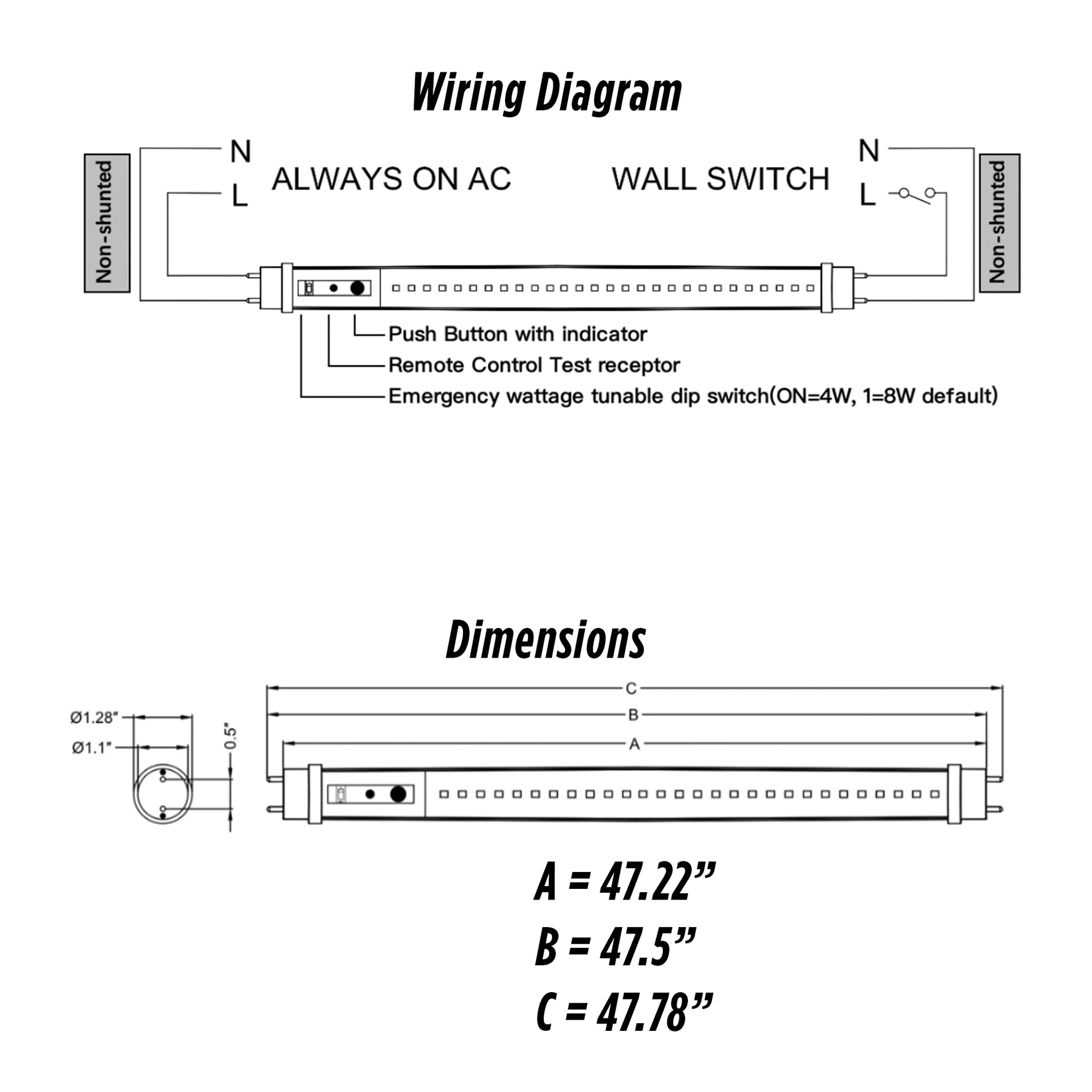 This EM tube must be wired to specifications to ensure 90 minute EM battery backup tube will stay charged and run for and additional 90 minutes after power outage. UL listed and tested thoroughly so you can count on it when you need it most.