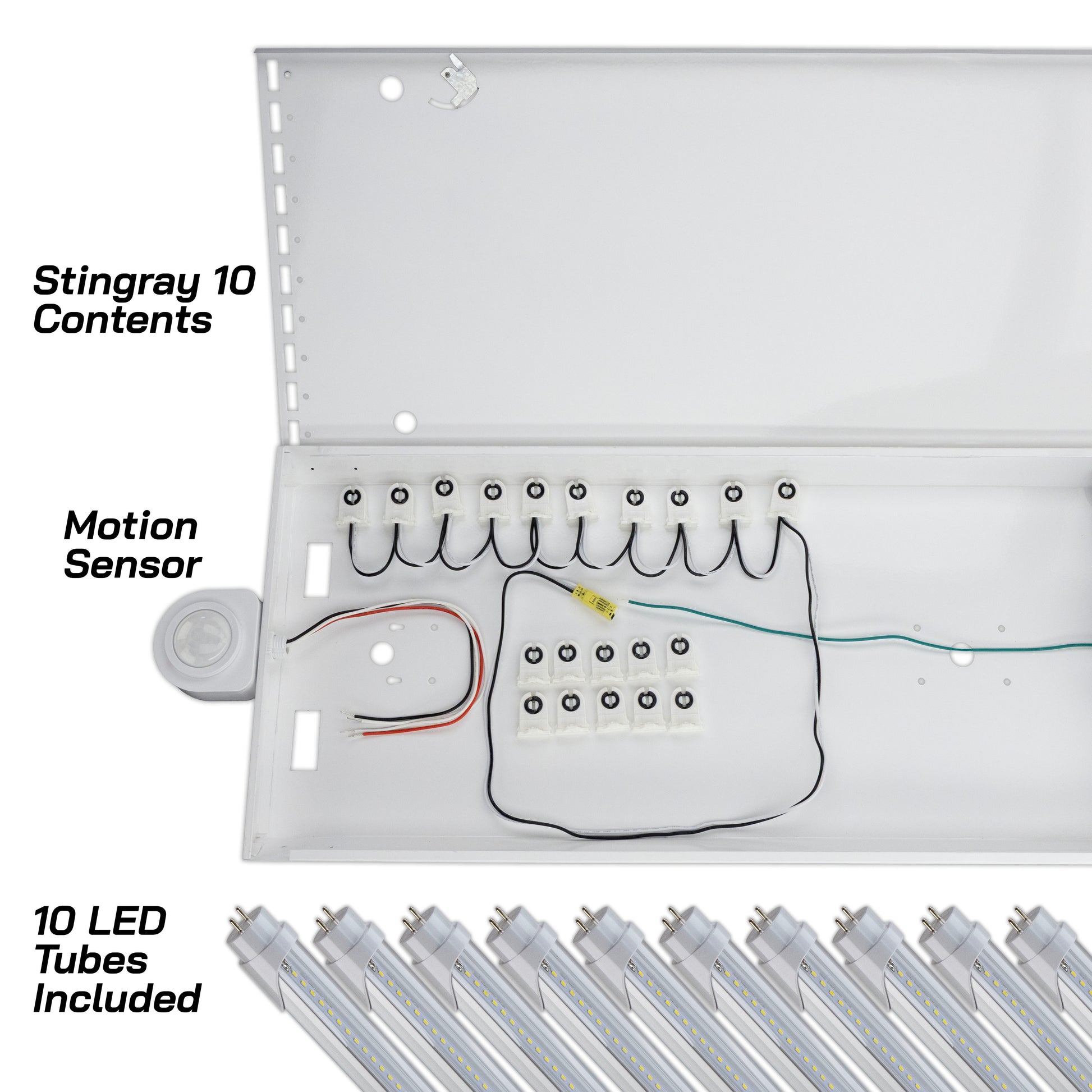 4ft. LED 10 Lamp T8 STINGRAY® 10XL GEN 2.0 - 200W Clear/Frosted LEDs - Motion Activated Shop Light 36,000 Lumens