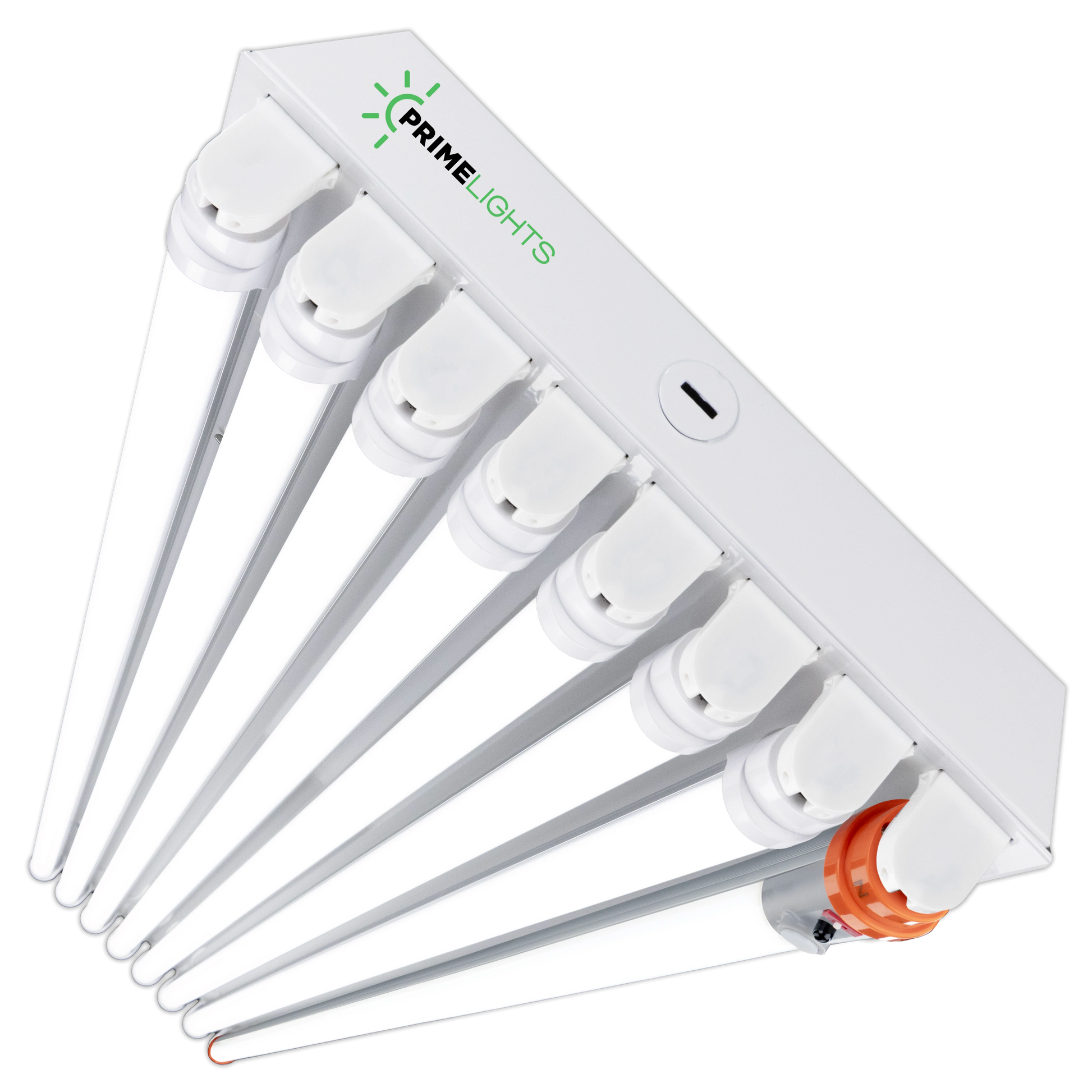 Specifications: Wired lamp holders, luminaire disconnect with 4 connection points for easy daisy chain, 20-gauge cold rolled steel in baked white enamel, 7/8'' conduit knockouts on both ends and top, mirrored aluminum reflector. Clear or Frosted LED bulbs with internal drivers - no external drivers or ballasts to maintain. You will never have to change anything inside the fixture. PrimeLights® warranties every fixture and every bulb for 5 years. 110v,120v, 240v, 277v. Long lasting, durable, and bright, this is the last light fixture you will ever need!