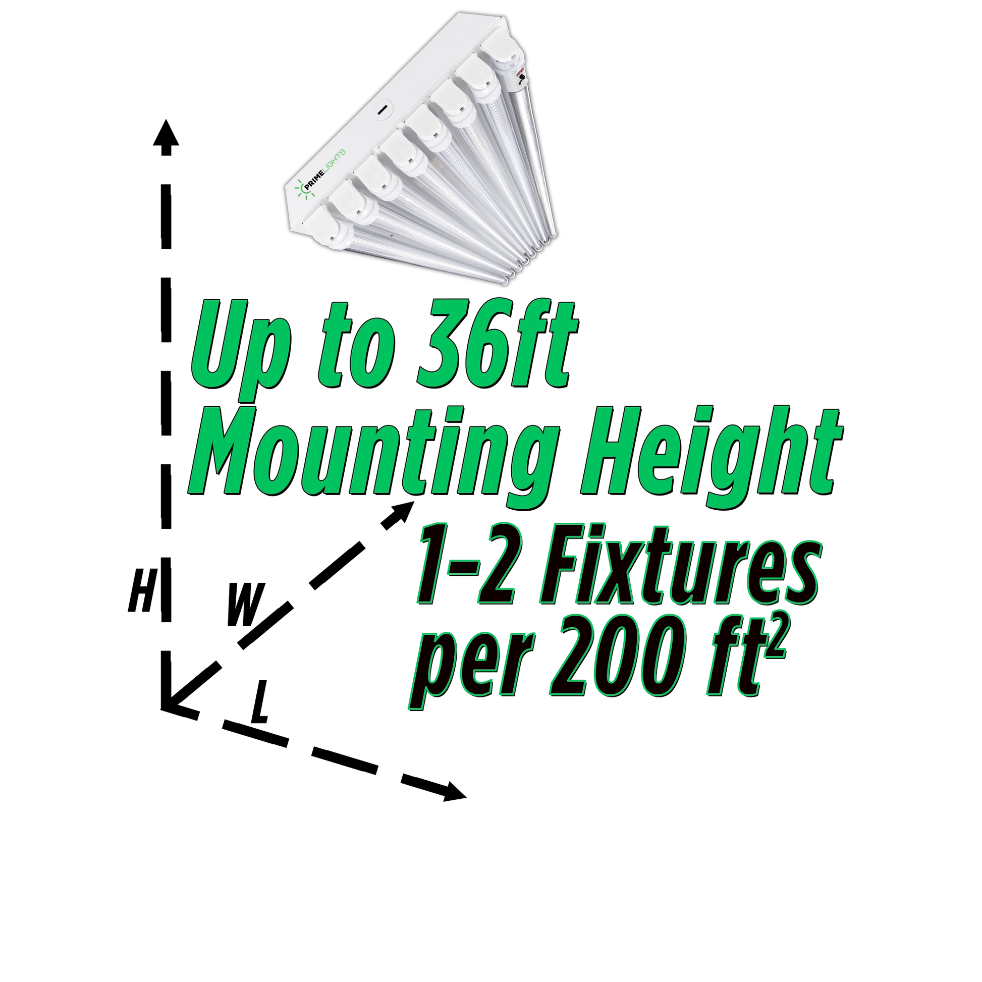Applications: The PrimeLights® LED Stingray® 8 is the ideal fixture for ceiling heights ranging up to about 35', depending on spacing and application. Transform your shop to picture perfect daylight with clean, energy efficient, cool running, bright LED four-foot fixtures. Ideal for any size shop including metal buildings, warehouses, fab shops, garages, barns, hobby shops, car restoration, showrooms, and factories just to name a few. Frosted lamps provide reduced glare when compared to clear. For lower ceilings please see our PrimeLights® LED Stingray® 6 & 4 Series.