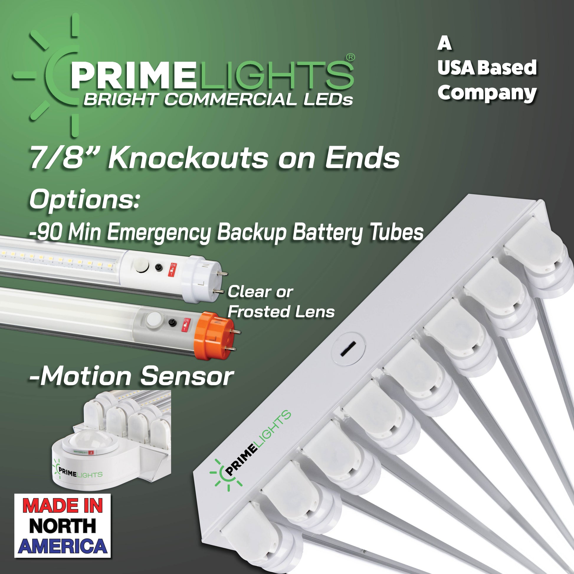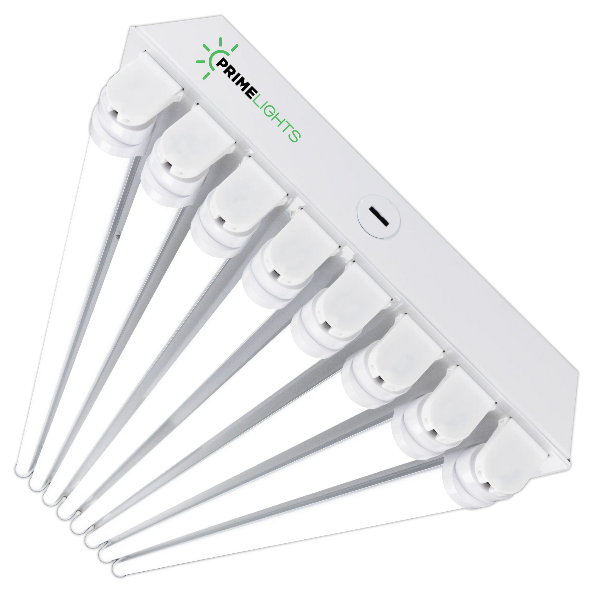 Specifications: Wired lamp holders, luminaire disconnect with 4 connection points for easy daisy chain, 20-gauge cold rolled steel in baked white enamel, 7/8'' conduit knockouts on both ends and top, mirrored aluminum reflector. Clear/Frosted LED bulbs with internal drivers - no external drivers or ballasts to maintain. You will never have to change anything inside the fixture. PrimeLights® warranties every fixture and every bulb for 5 years. 110v,120v, 240v, 277v. Long lasting, durable, and bright, this is the last light fixture you will ever need!