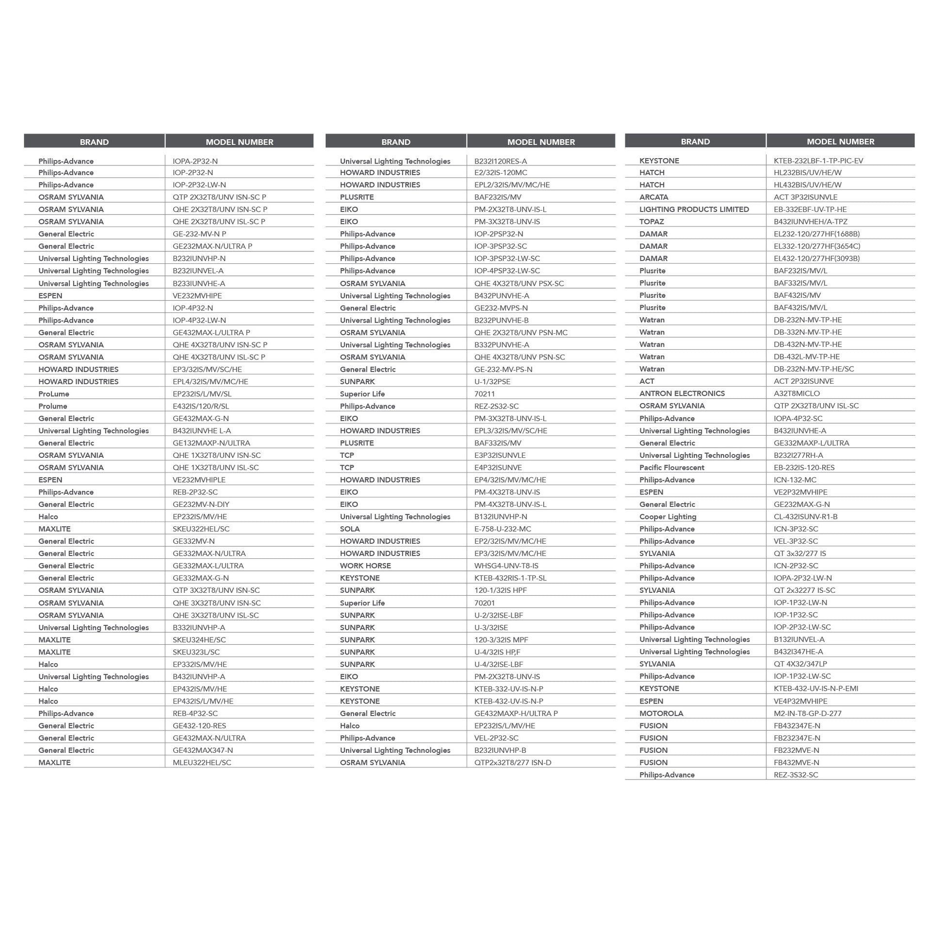 Ballast Compatibility: Works with a wide range of electronic ballasts (see product images for list)