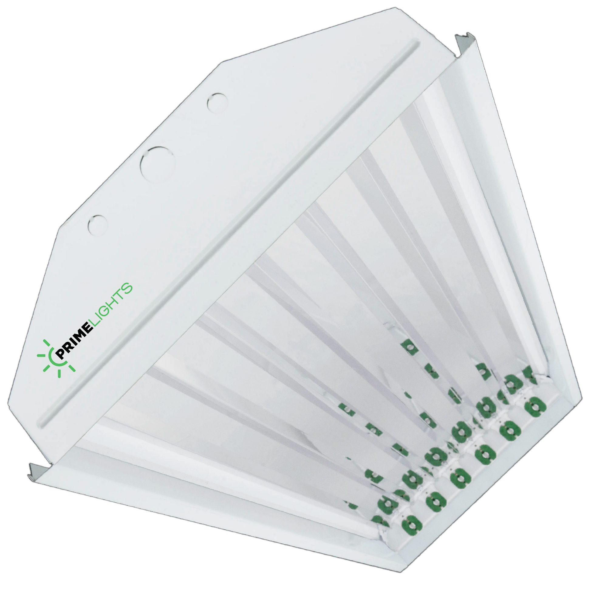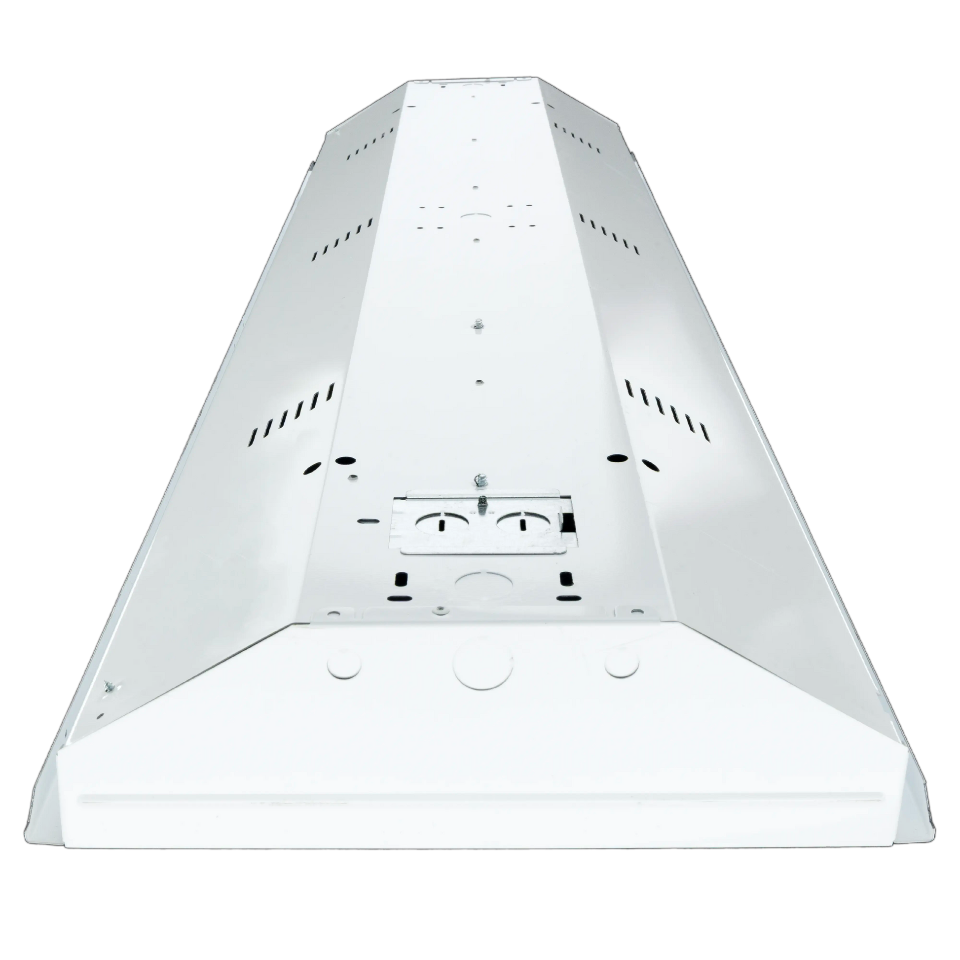 0° Electronic Howard ballasts, 110v/120V/277V 50/60Hz electronic ballasts, lampholders wired, 20 gauge full body steel housing, cold rolled steel in baked white enamel, 7/8'' conduit knockouts on both ends and top, Mirrored aluminum reflector.