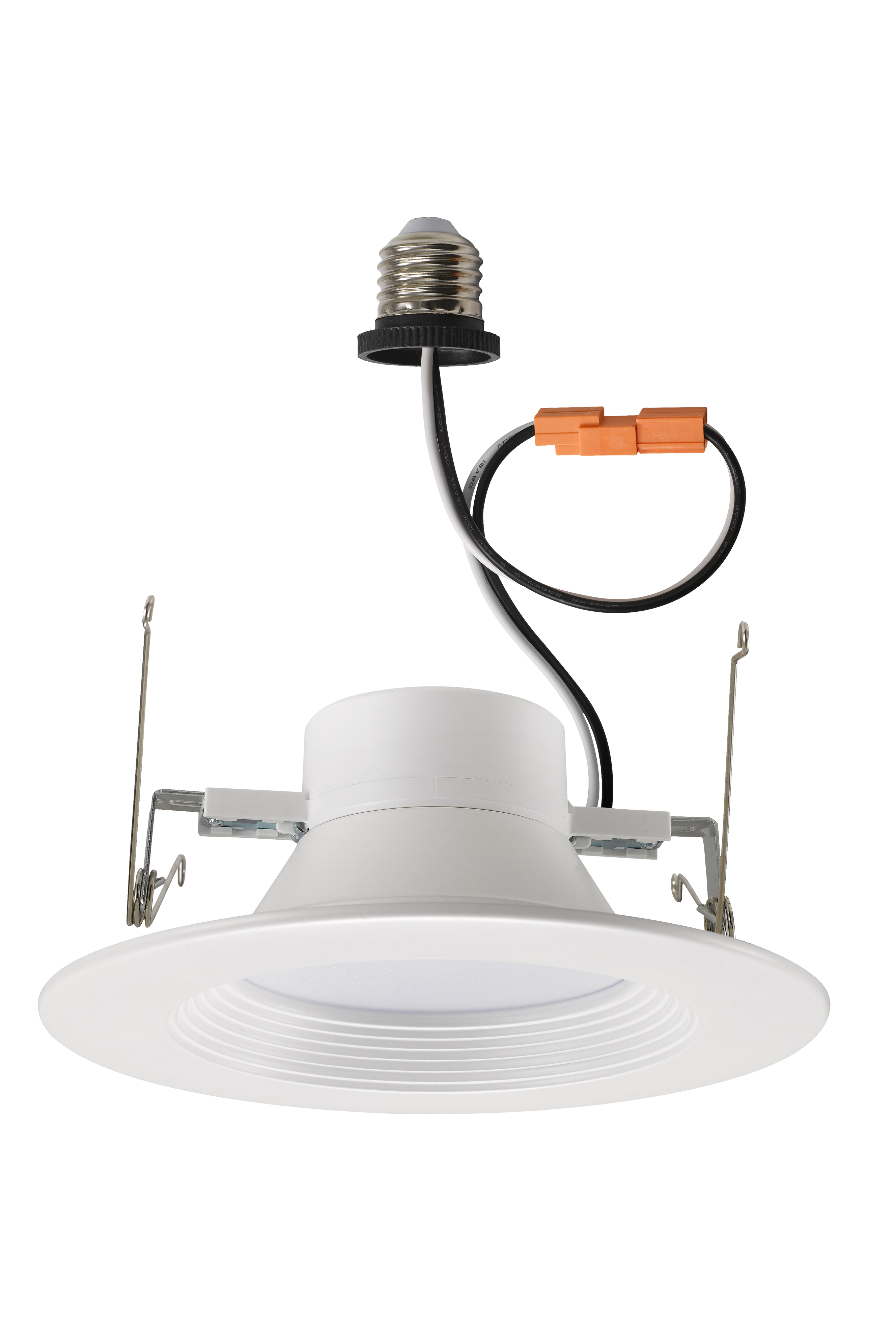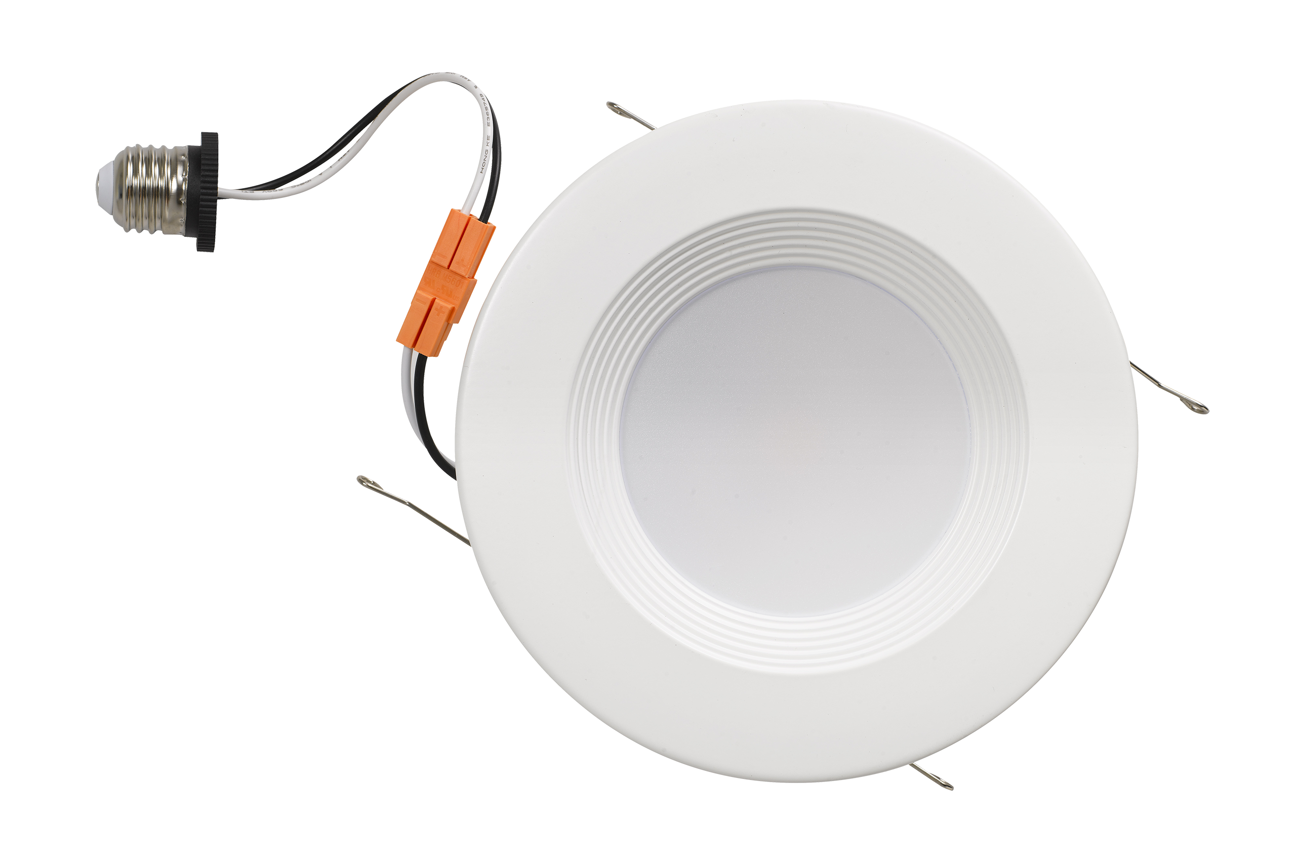 • Integrated white trim with medium base(E26) socket adapters (included in packing) for direct replacement