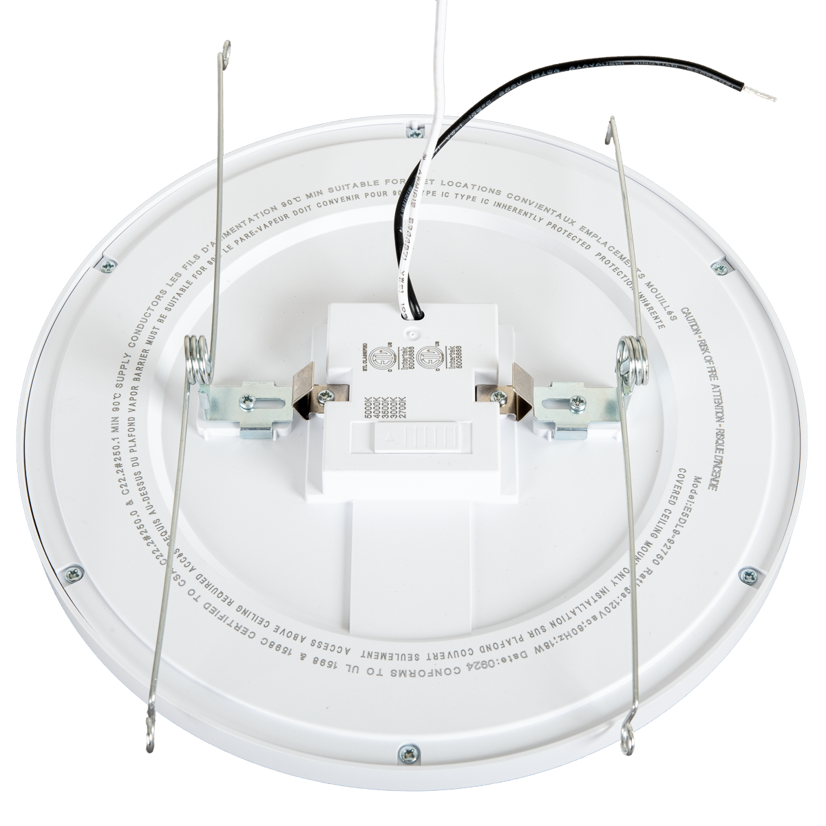 - Dual mounting system - install into standard junction box or 5"/6" recessed downlight can using supplied spring clips.