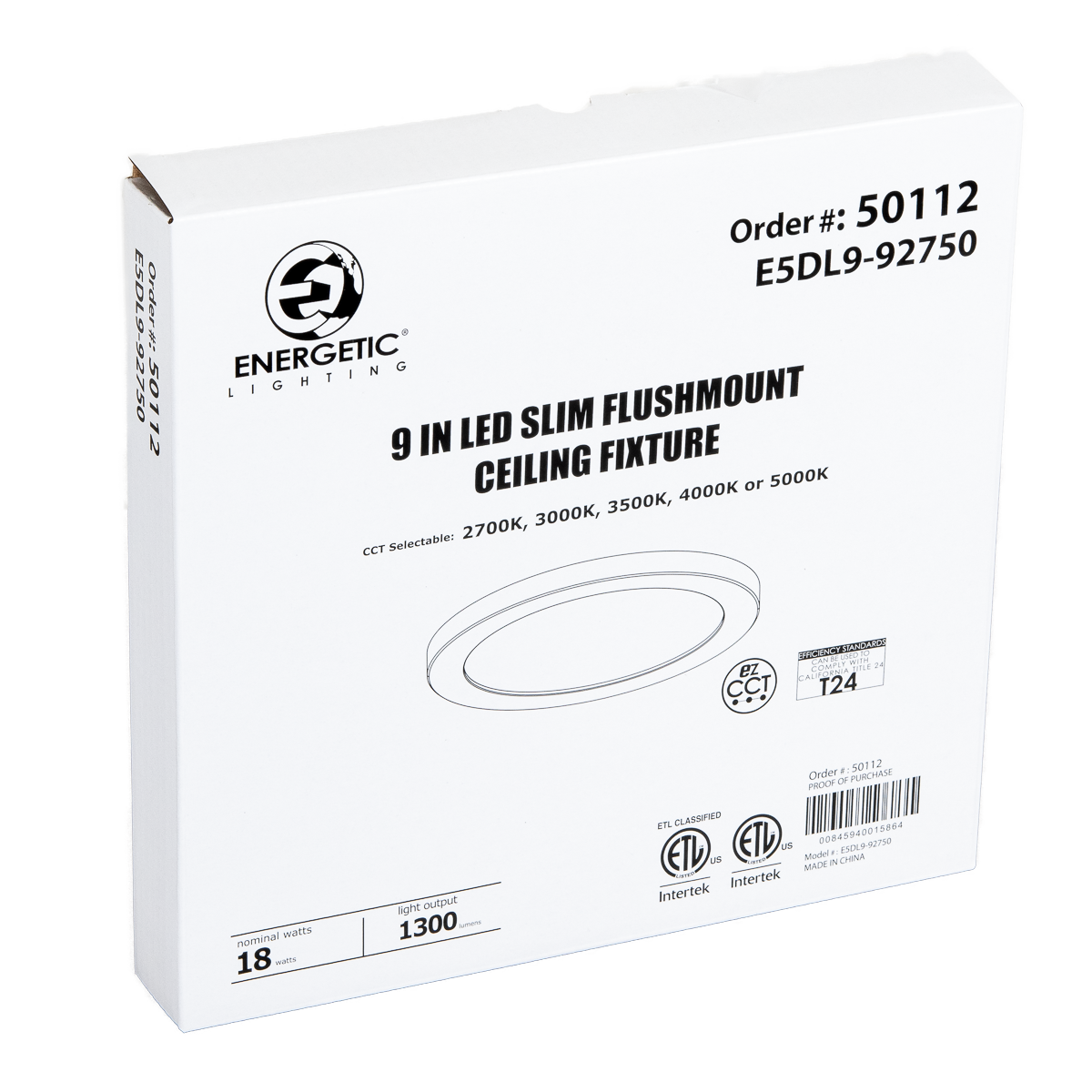 Energetic Lighting’s E5DL series is suitable for use in a broad range of commercial applications. This 9" diameter profile, with classic, low-profile design gives a sleek look. Unique dual mounting system allows installation into traditional junction box, or into an existing 5" or 6" recessed downlight can housing for 9" profiles. ezCCT feature provides field selectable CCT color temperature: 2700K, 3000K, 3500K, 4000K, & 5000K. Smooth dimming capabilities ranging from 100% to 10% with modern LED dimmers allow you to control the look and feel of your space. The E5DL series is a great choice for renovation opportunities replacing existing commercial Slim flush mount fixtures or for new construction projects that require code compliant energy saving LED solutions. With a lifespan of 50,000 hours, these fixtures are made to last decades under normal operation! This fixture can cut your electric bill by up to 80% instantly and will save you a significant amount of money in its lifetime.