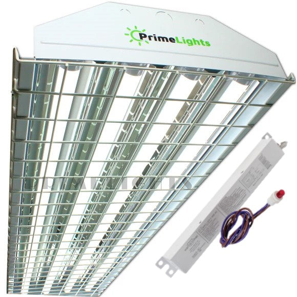 Specifications: Wired lamp holders, luminaire disconnect with 4 connection points for easy daisy chain, 20-gauge cold rolled steel in baked white enamel, 7/8'' conduit knockouts on both ends and top, mirrored aluminum reflector. Clear or Frosted LED bulbs with internal drivers - no external drivers or ballasts to maintain. You will never have to change anything inside the fixture. PrimeLights® warranties every fixture and every bulb for 5 years. 110v,120v, 240v, 277v. Long lasting, durable, and bright. Made in the USA of American Steel, this is the last light fixture you will ever need!
