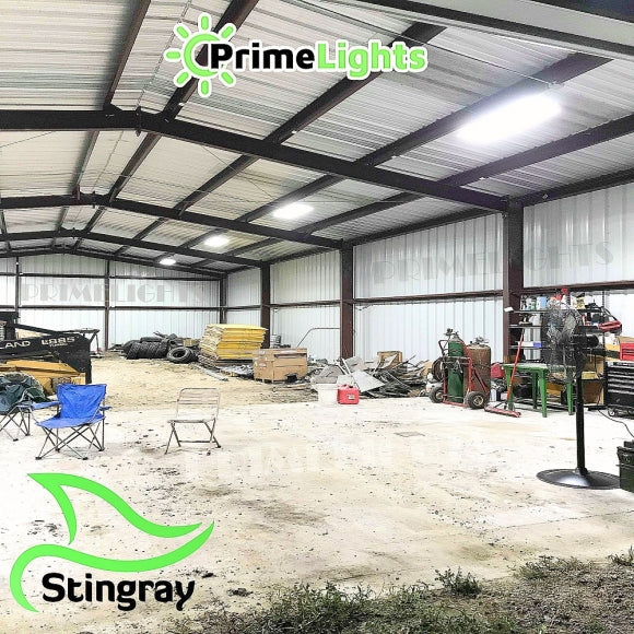 Applications: The PrimeLights® LED Stingray® 4 is the ideal fixture for ceiling heights ranging up to about 20’. Transform your shop to picture perfect daylight with clean, energy efficient, cool running, bright LED four-foot fixtures. Ideal for any size shop including metal buildings, warehouses, fab shops, garages, barns, hobby shops, car restoration, showrooms, and factories just to name a few. Frosted lamps provide reduced glare when compared to clear. For higher ceilings please see our LED Stingray® 6.