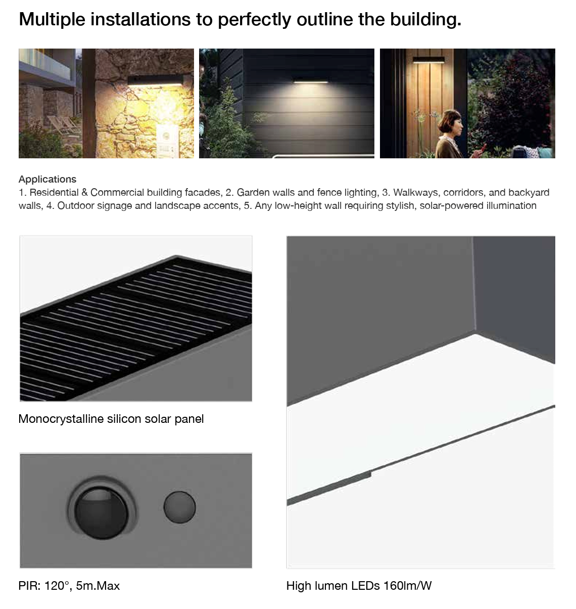 Illuminate your space with the PrimeLights Monolith Solar Wall Pack, a compact and modern solar-powered light designed for both performance and style. Ideal for building perimeters, walkways, patios, and low-mount outdoor applications, this fixture delivers dependable lighting while promoting energy efficiency and easy installation—no wiring required.